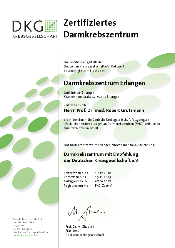 die Chirurgische Klinik ist seit 2024 zertifiziertes Leberkrebszentrum der Deutschen Krebsgesellschaft. In diesem Zusammenhang werden die Versorgungsqualität und die Versorgungsabläufe von externen Experten bis in alle Einzelheiten geprüft und beurteilt. Unser Ziel ist, die optimale Behandlung sowie die größtmögliche Sicherheit für unsere Patienten zu gewährleisten und uns dabei stetig zu verbessern. Im Rahmen des Qualitätsmanagements überprüfen wir daher ständig unsere Abläufe und Prozesse, sowie die Einhaltung der Vorgaben und Standards mittels interner und externer Audits (DIN EN ISO 9001:2015).
